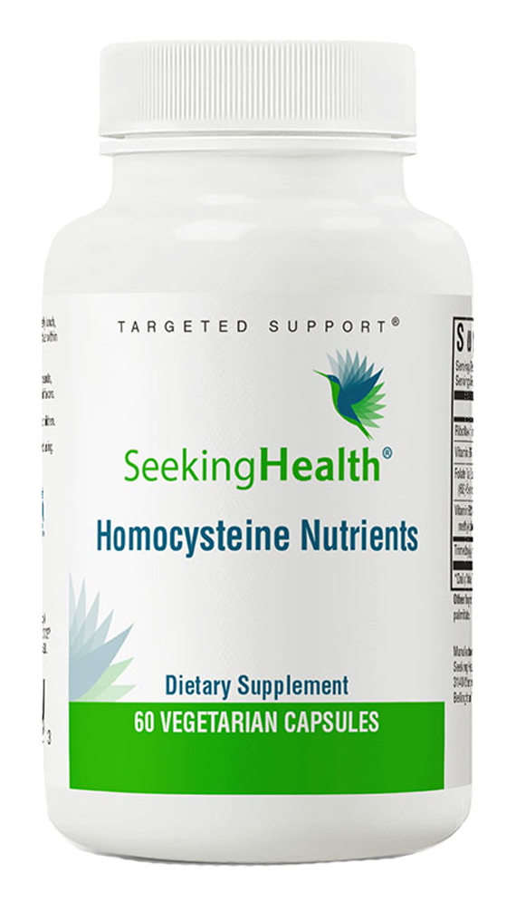 HomocysteX Plus by Seeking Health supplies bioactive forms of four essential Bvitamins together with betaine (also known as trimethylglycine or TMG) to synergistically support methylation processes and normal homocysteine metabolism. The body's methylation process is vital for formation of essential cell components such as proteins, nucleic acids found in DNA and RNA, and phospholipids that form nerve cell membranes. By transferring methyl groups (three hydrogen atoms bonded to a carbon atom, known as CH3) from one molecule to another, methylation turns on genes, activates enzymes, drives detoxification reactions, influences hormone secretion, and helps maintain normal metabolism of homocysteine, a potentially harmful amino acid metabolite. Unfortunately, poor nutrition, oxidative stress and various other factors can impair methylation processes throughout the body.*